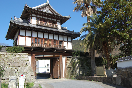 The shogunal castle of the So clan of the Tsushima Domain, Kaneishi Castle was located on the southern foot of Shimizuyama. In 1528, the original residence of the So clan, Ike-no-Yakata in Imayashiki, was burned down during an internal conflict within the clan, after which the island head, So Masamori, moved the clan residence to this location. Kaneishi Castle was used as the shogunal castle until the completion of Sajikihara Castle in 1678, after which, as the gateway to Japan, it played a role as an official guesthouse for envoys from Joseon. Today, the yagura-mon (watchtower gate) has been rebuilt, and parts of the stone wall still survive. From these remnants, along with illustrations of the castle from the Edo period (held by the Prefectural Tsushima History and Folk Customs Museum), one can easily imagine the imposing scale of the castle.