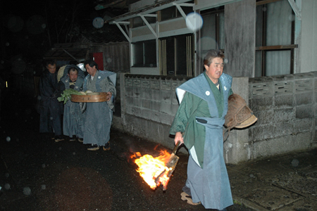 TsushimaThe Tsutsu Red Rice Festival is a religious rite held to worship as a kami, or god, the spirit that dwells in akamai (red rice). Akamai is said to be an original strain of rice plant brought over to Japan, which did not have its own, native rice plants, from the continent in ancient times. The akamai grown in Tsushima has been classified as a descendant of the strain that came to Japan from China’s Jiangnan region via the Korean peninsula in the late Jomon period through to the Yayoi period (2,000-2,500 years ago). The rites performed at this festival show a strong influence from various regions in East Asia. Tsutsu is the only place on Tsushima where this festival continues to be held.