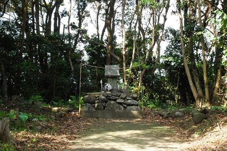 나카도리지마 섬에 위치한 견당사 관련 사적(사진은 ‘히메 신사’). 견당사 선박이 3일간 체류한 것에 유래하는 지명 ‘미카노우라’ 주변에는 견당사 선박의 돛을 수리했다고 여겨지는 ‘긴포세’, 견당사가 안전한 항해를 기원했다고 하는 ‘미후네사마’가 있습니다. 또한, 견당사 선박이 순풍을 기다리는 항구로서 『히젠국 풍토기』에도 등장하는 현재의 아이코와 아오카타 주변에는, 견당사가 안전한 항해를 기원했다고 전해지는 ‘히메 신사터’, 견당사 선박의 뱃줄을 매어두었다고 전해지는 ‘도모지리이시 바위’가 있습니다.